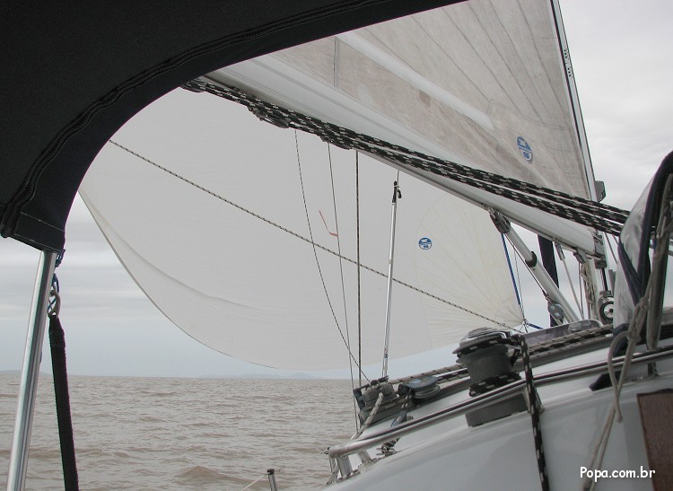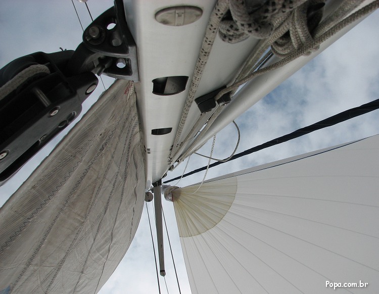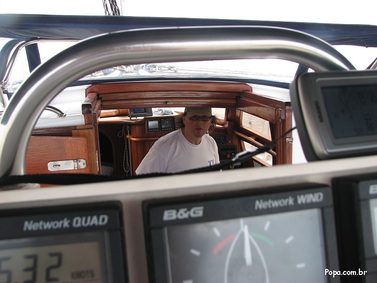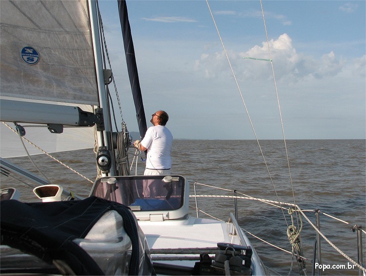 Comte Jorge Zaduchliver trimando o gennaker do veleiro Feitiço na Lagoa dos Patos