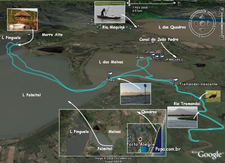 Track do Mirapalheta em Fev 2008, plotado sobre imagem do Google Earth Plus