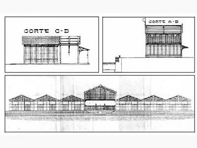 Em 1919 foram encomendados da empresa francesa Daydeé a estrutura metálica para os armazéns A e B e para o pórtico central. Obras concluídas em 1922.