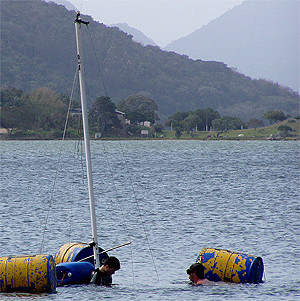 O Comte Régis Feldman navega na Lagoa da Pinguela