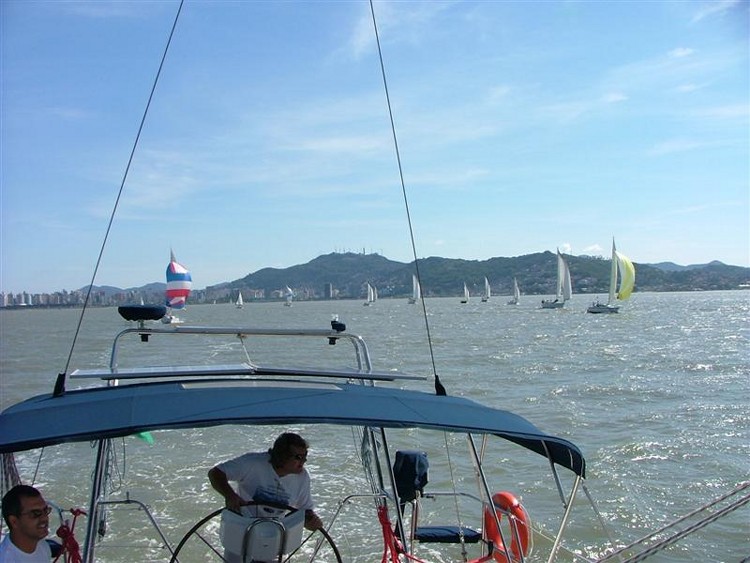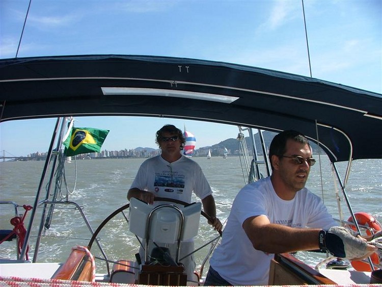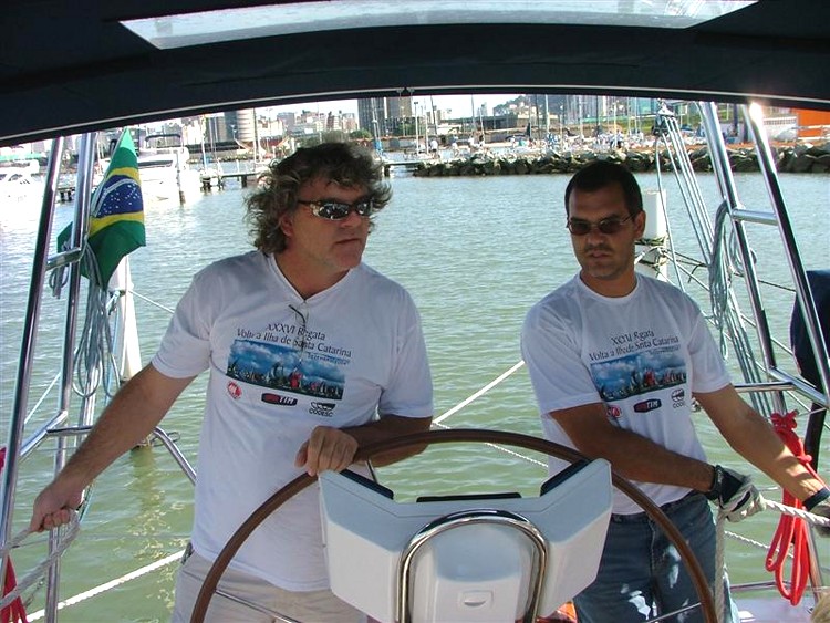 Gostaria de compartilhar com o popa.com.br uma bela incursão que fizemos a bordo do maravilhoso veleiro ENTRE PÓLOS, de PoA à Floripa, para correr a XXXVI Regata Volta à Ilha de Santa Catarina. Saímos do I.C.G às 10h do dia 23/11 numa bela velejada com um lestão de 20nós. Às 22h deixávamos para trás o Farol de Itapuã, já com a trinqueta e a grande no segundo rizo, pois o leste rondou um pouco mais e chegou a 35 nós nas rajadas. O Entre Pólos com suas 11 toneladas corria onda à 8.5 a 9 nós. Entramos na Feitoria às 13h do dia 24/11 com vento muito fraco de leste. Às 20h atracamos no Rio Grande Iate Clube, com o tempo se formando para sudoeste, com um pequeno Cumulus Nimbus. Durante a noite ventou pouco, mas com uma tempestade elétrica muito forte seguida de muita chuva. Dia 26/11 amanheceu ensolarado e com um ventinho sul fraco e como a previsão era esse vento para os próximos três dias, deixamos a barra de Rio Grande ao meio dia, com mar muito tranqüilo. Dia 28/11 às 13h, entrávamos na barra sul de Floripa, depois de 49h de uma bela navegada com um sulzinho que quando apertava, chegava a 12 nós.Motoramos o tempo todo para ajudar. Dia 4/12 tentamos correr a regata, até fomos bem da largada até a barra sul, pois o vento era um nordeste de 20-25 nós. Ao contornarmos a barra sul, a situação começou a complicar. De saída estourou um carrinho da escota de boreste da genoa, o mar estava picado e o vento fraquejando, além de uma corrente descendo a costa de mais ou menos 2 nós. Na altura da Barra da Lagoa, lá pelas 19h, resolvemos abandonar porque o vento caiu para menos de 7 nós. Completamos a volta à Ilha